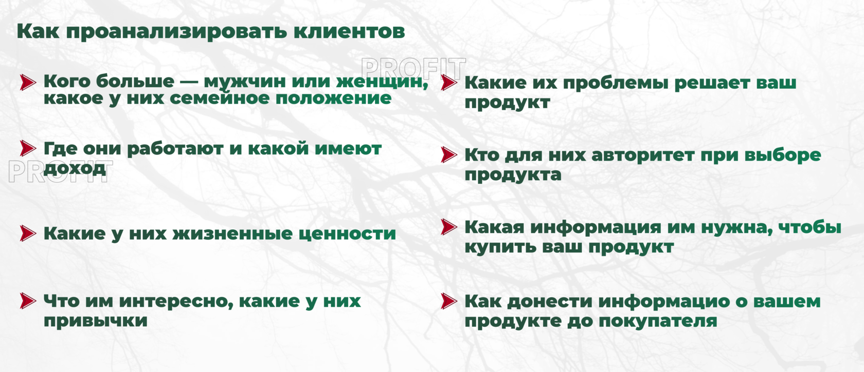 Проанализировать своих клиентов: какие у них потребности, что их цепляет