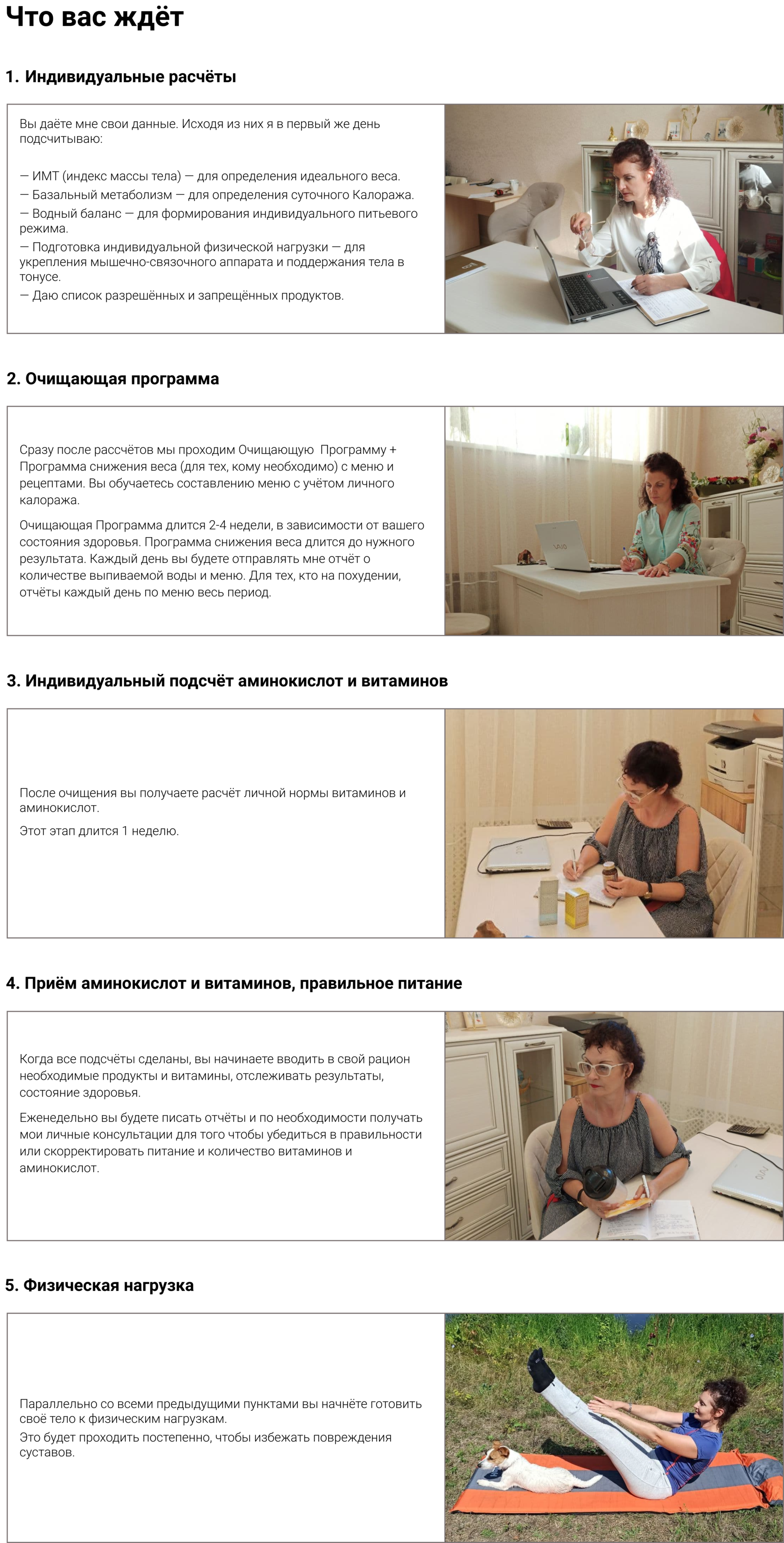 Для того, чтобы быть здоровым, наше тело должно получать витамины и аминокислоты. В зависимости от нынешнего состояния здоровья, это количество у каждого своё. И рассчитываю я его для каждого индивидуально.